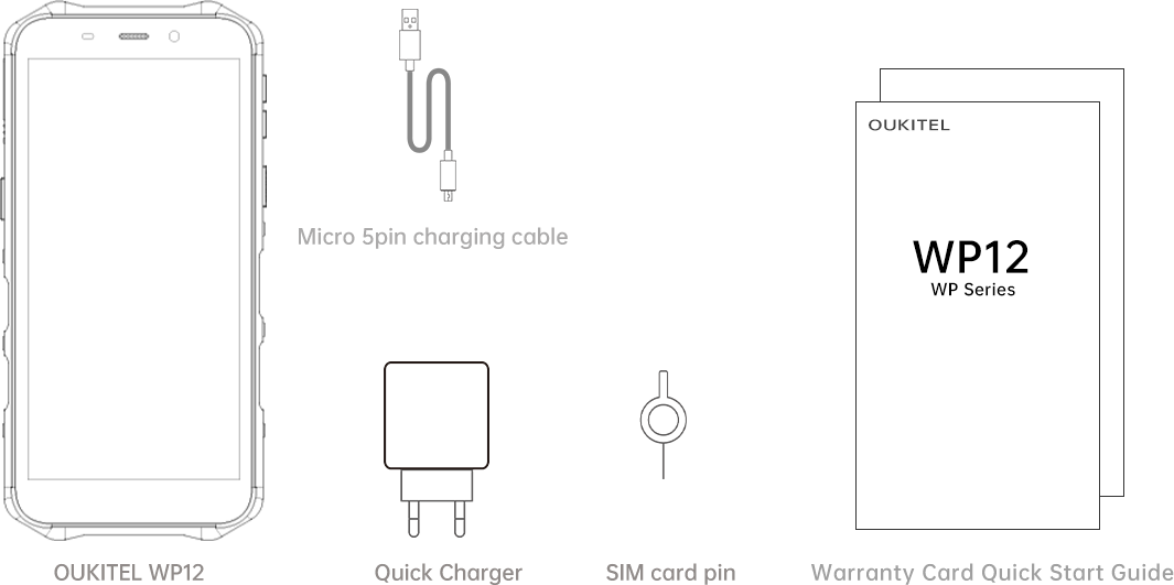 5. OUKITEL WP12 is shockproof, water, and dust resistant and was tested under controlled laboratory conditions with a rating of IP68 under IEC standard 60529 (maximum depth of 1.5 meters up to 30 minutes). Charger and accessories are not water-resistant. Shockproof, water and dust resistance are not permanent and might decrease as a result of normal wear. Do not attempt to charge a wet OUKITEL WP12. Liquid damage is not covered under warranty.
