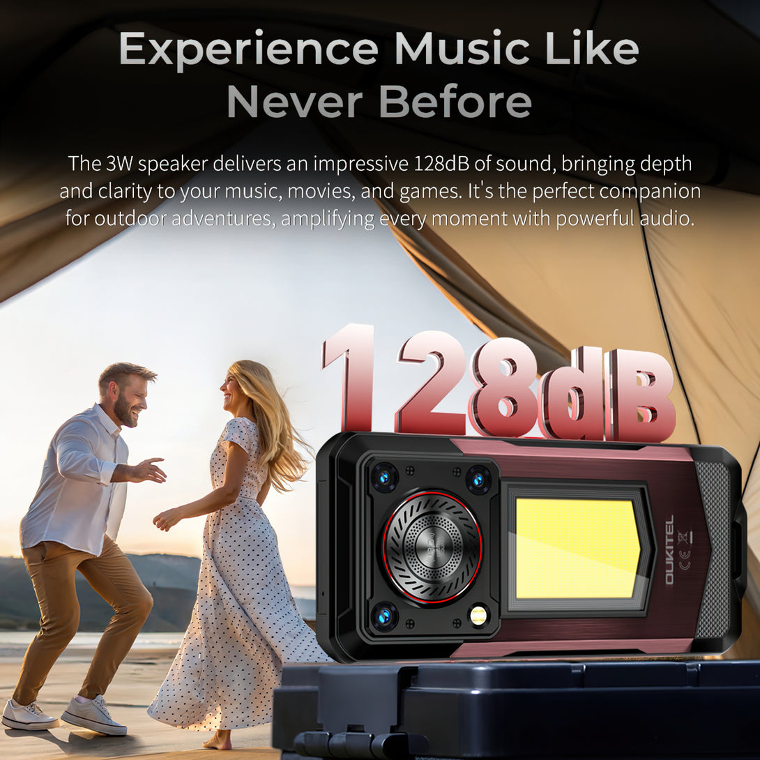 The powerful 3W loudspeaker delivers an impressive 128dB of clear, dynamic sound—perfect for outdoor settings. Whether you're camping, hiking, or just relaxing outside, it makes your music, movies, and games loud and lively.