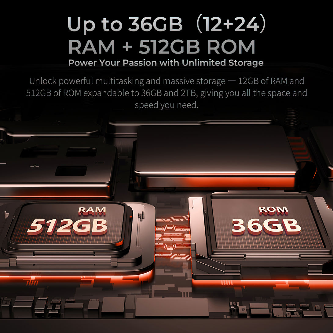 Unlock effortless multitasking and huge storage with 12GB of RAM and a massive 512GB of built-in space—expandable up to 36GB of RAM and 2TB of storage. Stay fast, organized, and ready for anything, no matter how many apps or files you keep on your device.