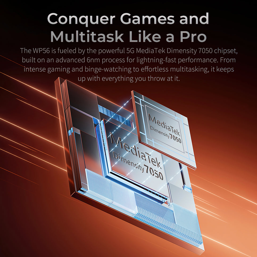 Equipped with the 5G MediaTek Dimensity 7050 chipset and built on an advanced 6nm process, the Oukitel WP56 delivers lightning-fast performance. From intense gaming and nonstop streaming to quick app switching, it handles everything with ease—no slowdowns.