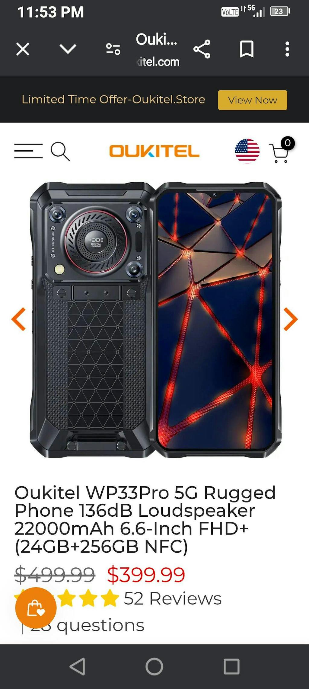 Equipped with a 5W super loud speaker, the Oukitel WP33 Pro rugged phone delivers up to 136dB loudness, the highest ever seen on a rugged smart phone, absolutely redefining your audio world.